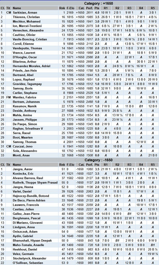 La limite des 5 joueurs ayant moins de 2000 a été modifée à 10 suite à plusieurs désistements
